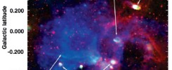 In total, 357 hours of H.E.S.S. data taken between 2004 and 2006 at small zenith angles were searched for the characteristic signature of direct Cherenkov emission from heavy nuclei: a concentrated very bright light spot at the head end of the extended shower image. Among these data, 1899 events were selected with the appropriate signature detected simultaneously in at least two telescopes. Fig. 1 shows a typical “direct Cherenkov” event: a single very bright image pixel – containing many 100 photoelectrons – is detected in close angular proximity to the reconstructed axis of the air shower, followed by a broad trail of air shower emission pointing away from the shower axis. As predicted, such events are only detected when the telescope is relatively close to the trajectory of the primary particle – about 70 to 120 m. A question is, of course, if such a signature could be faked by statistical fluctuations in normal images. On the basis of simulations, one expects about 10 background events per hour when the “direct Cherenkov light” signature is requested in a single telescope, already well below the detected rate of about 100 such events each hour. Final confirmation comes from events where the primary particle is detected simultaneously in 2, 3 or even 4 telescopes (Fig. 2); there, backgrounds are predicted to be completely negligible. As mentioned above, the H.E.S.S. analysis is based on the 1899 events where the primary nucleus is seen in at least two telescopes. Since such coincidences can only be seen when all telescopes happen to be at the right distance from the trajectory of the cosmic ray, the detection rate drops by about a factor 10 for each additional telescope. The charge resolution of the technique is not perfect, but is sufficient to identity and separate iron-like elements among cosmic rays and to determine their flux (Fig. 3). The new measurement is consistent with previous results and is more precise. The measured spectral index for iron nuclei in the 10 to 100 TeV energy range – 2.7 to 2.8 – agrees with the index of the overall cosmic ray spectrum, indicating that in this range the fraction of heavy elements among cosmic rays is roughly constant. Limited statistics currently prevent extension of the spectrum into the “knee” region where a change in composition is expected. As discussed byKieda et al. (2001), a dedicated instrument with even finer image pixels and nanosecond temporal resolution could further improve the charge reconstruction. However, the H.E.S.S. results show that the technique is not entirely free of systematic uncertainties related to the shower development: heavy fragments created in the first interaction of the nucleus contribute at reduced level to the “direct” Cherenkov light and the predicted rate of such fragments varies between different air shower models (Fig. 3).