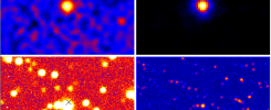 PKS 0301-243 is a blazar at redshift z=0.266. This – for very high energy gamma ray standards – high redshift makes PKS 0301-243 an interesting object to study absoption of gamma rays by interaction with the extragalactic background light (see SOM Jan. 2013).The target has been observed with H.E.S.S. between 2009 and 2011 for a total of 42 h of good data, resulting in a clear detection (Fig. 1). In addition, PKS 0301−243 has been observed in the past few years in other wavelengths by the Fermi and Swift satellites as well as with the optical telescope ATOM on the H.E.S.S. site, giving precious insights in the spectral energy distribution of the source, and probing its variability. Fig. 2 shows the resulting light curve. The LAT pair conversion instrument onboard the Fermi satellite, sensitive to gamma-rays between 100 MeV to more than 300 GeV, observed in April 2010 a very bright flaring episode of culminating around April 28, 2010 (A. Cannon, 2010). Outside this period, as well as for very high energy gamma rays, no strong variability is observed; during the flare, the object was unfortunately not visible for H.E.S.S.. In the optical range, the ATOM robotic telescope did see continous variability of the source (bottom panel in Fig. 2).