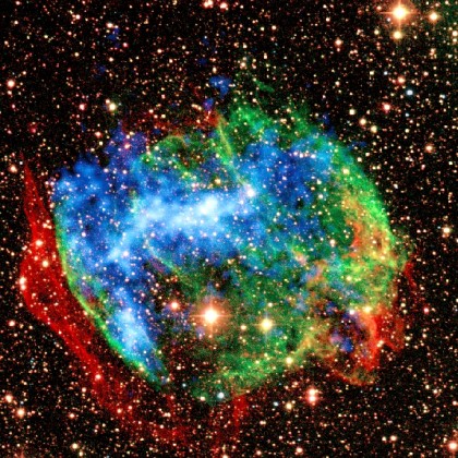 December 2010 A composite Chandra X-ray (blue) and Palomar infrared (red and green) image of the supernova remnant W49B reveals a barrel-shaped nebula (Source: X-ray: NASA/CXC/SSC/J. Keohane et al.; Infrared: Caltech/SSC/J.Rho and T. Jarrett).…