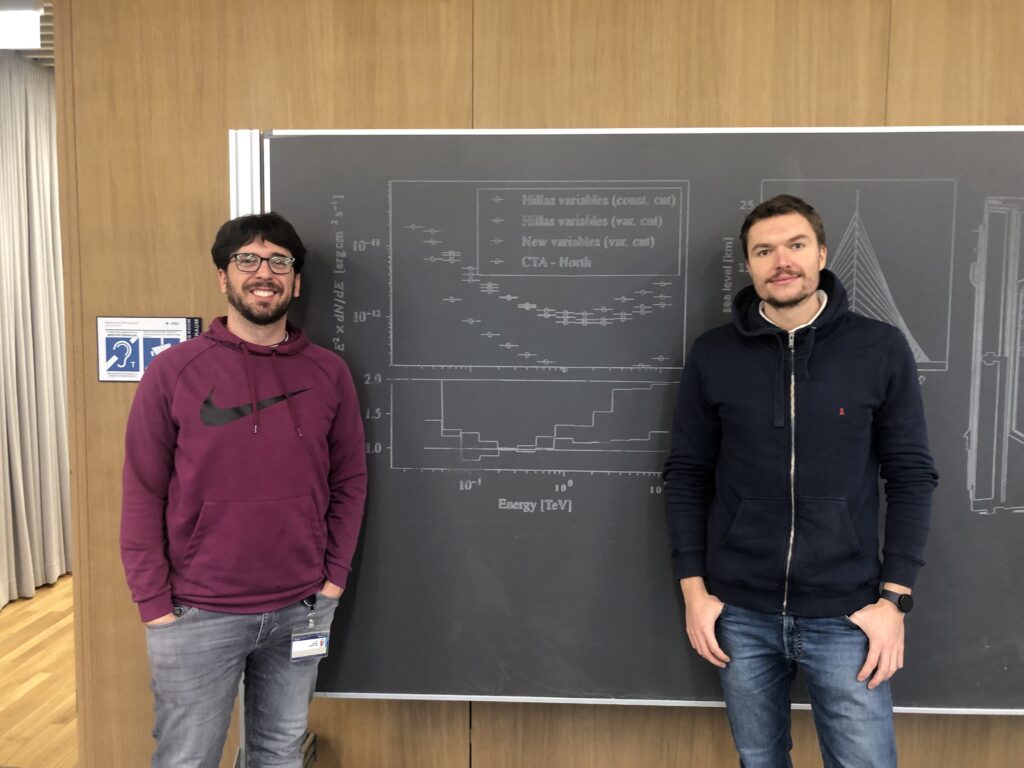 Rodrigo and Tim share the H.E.S.S. Prize awarded at the Fall 2025 Collaboration Meeting. Together, they made seminal contributions to the development of new analysis configurations for HAP, the H.E.S.S. Analysis Program. Tim focused on improvements to the analysis of monoscopic data from CT5, the largest H.E.S.S. telescope. To achieve this, he conceived of multiple new parameters to parametrise the telescope images and subsequently used these to enhance the rejection of background events, using machine-learning algorithms. Pushing for a lower energy threshold he encountered many difficulties but was able to overcome them and provide a new configuration that yields a much better sensitivity compared to the previous one. Rodrigo built on this work to develop the first analysis configuration in the HAP framework that properly takes into account data from all five H.E.S.S. telescopes. Furthermore, he pioneered and established the concept of event types, which are designed to deliver an optimal sensitivity across the full energy range covered by the telescopes – while it was usually necessary to make compromises at low or high energies with previous configuration. Because both projects were tied to each other and Rodrigo and Tim worked together on both, the H.E.S.S. Collaboration Board decided to award the H.E.S.S. Prize to both of them.