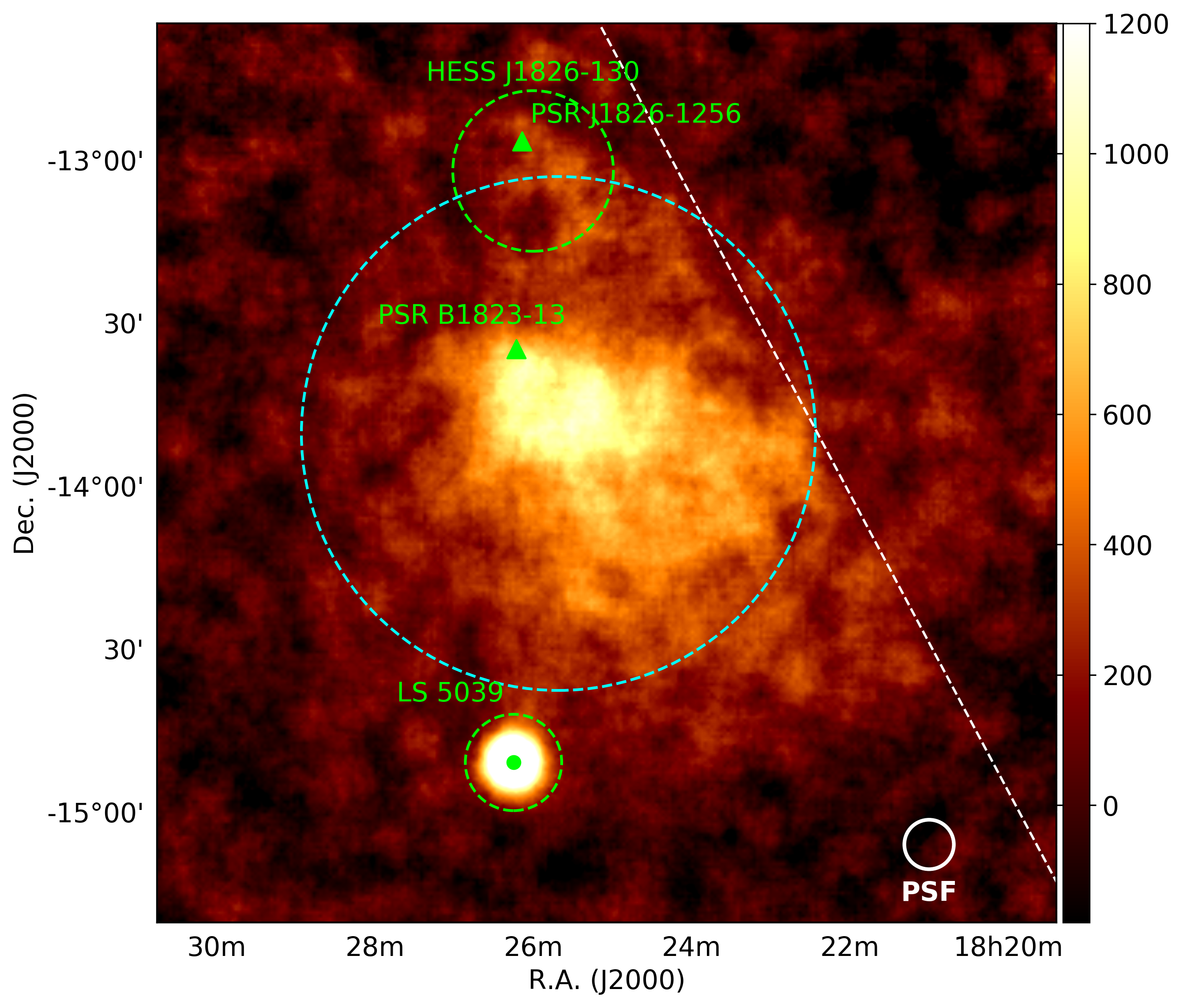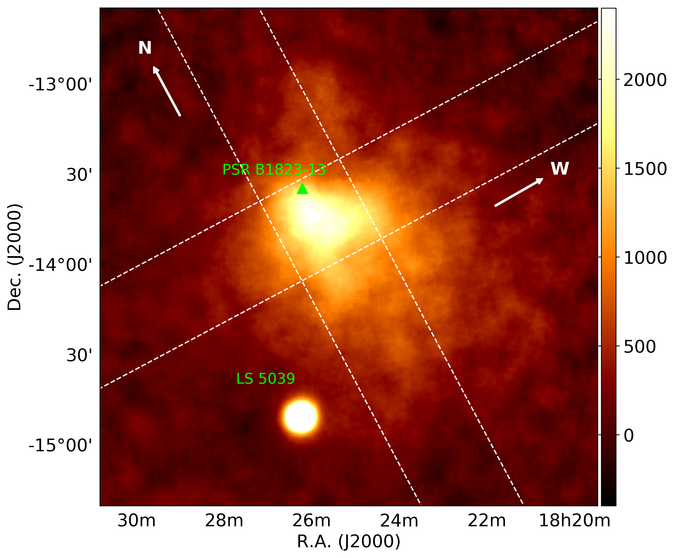 Methods. The nebula emission is revealed to extend out to 1.5° from the pulsar, ~1.5 times farther than previously seen, making HESS J1825–137, with an intrinsic diameter of ~100 pc, potentially the largest γ-ray PWN currently known. Characterising the strongly energy-dependent morphology of the nebula enables us to constrain the particle transport mechanisms. A dependence of the nebula extent with energy of R ∝ Eα with α = −0.29 ± 0.04stat ± 0.05sys disfavours a pure diffusion scenario for particle transport within the nebula. The total γ-ray flux of the nebula above 1 TeV is found to be (1.12 ± 0.03stat ± 0.25sys) × 10−11 cm−2 s−1, corresponding to ~64% of the flux of the Crab nebula.