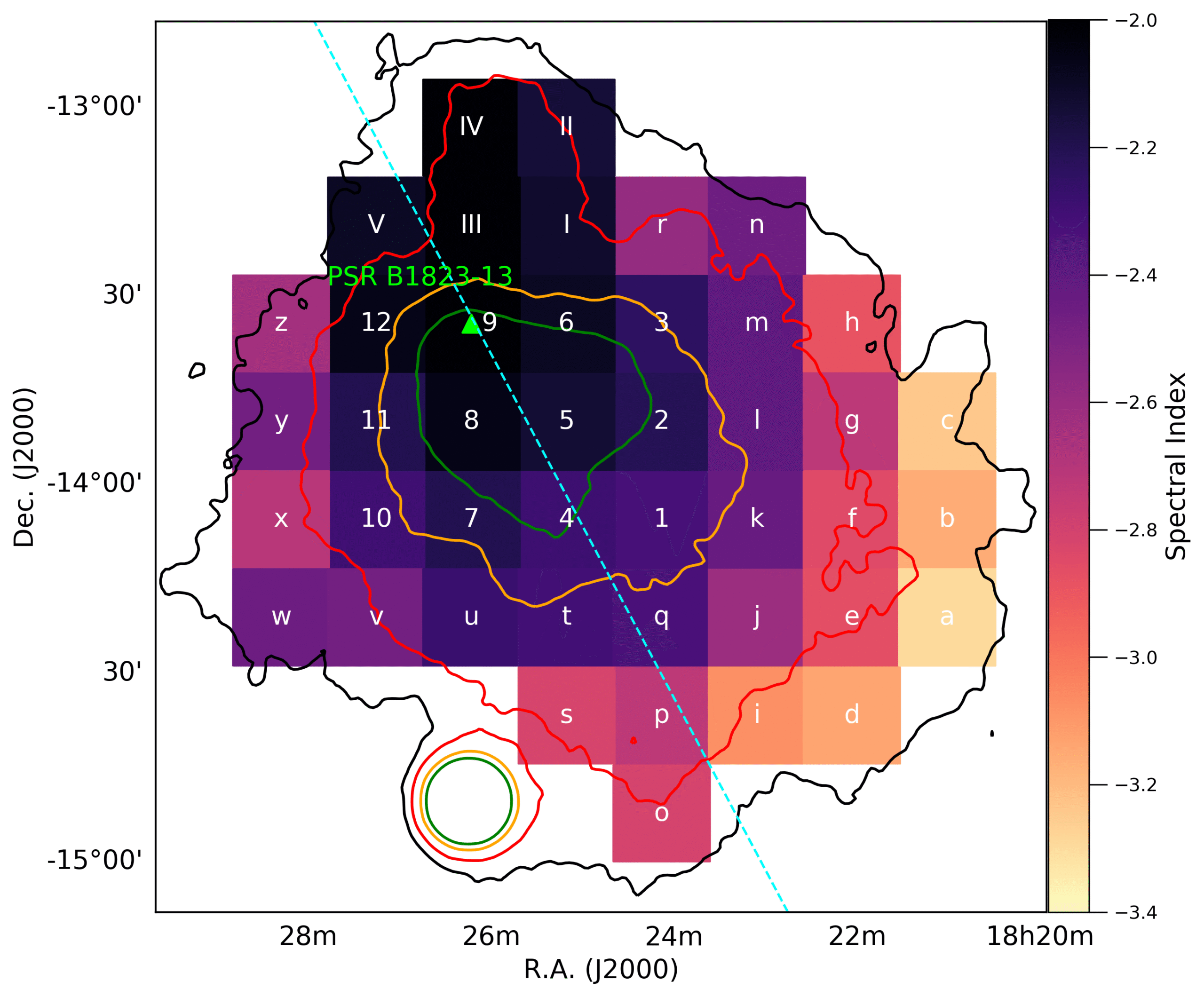 Results. HESS J1825–137 is a PWN with clearly energy-dependent morphology at VHE γ-ray energies. This source is used as a laboratory to investigate particle transport within intermediate-age PWNe. Based on deep observations of this highly spatially extended PWN, we produce a spectral map of the region that provides insights into the spectral variation within the nebula.