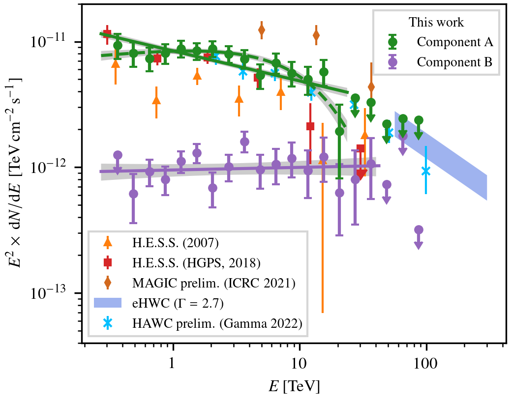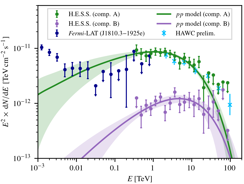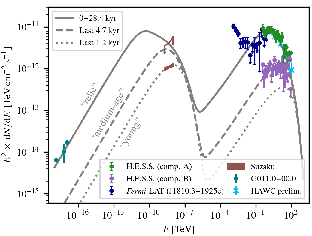 Conclusions. Our modelling indicates that based on its spectrum and spatial extent, the extended H.E.S.S. component is likely caused by inverse Compton emission from old electrons that form a halo around the pulsar wind nebula. The compact component could be connected to either the pulsar wind nebula or the supernova remnant and molecular clouds. Due to its comparatively steep spectrum, modelling the Fermi-LAT emission together with the H.E.S.S. components is not straightforward.