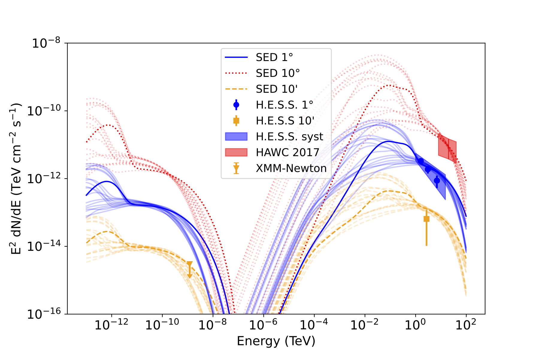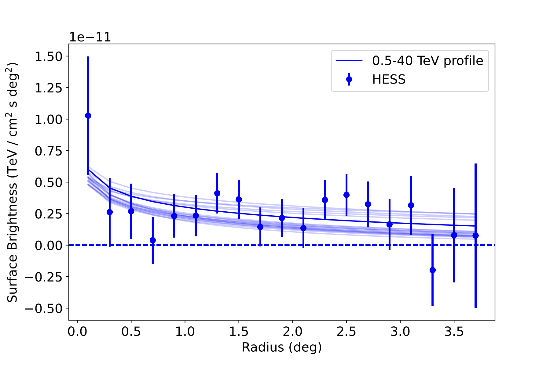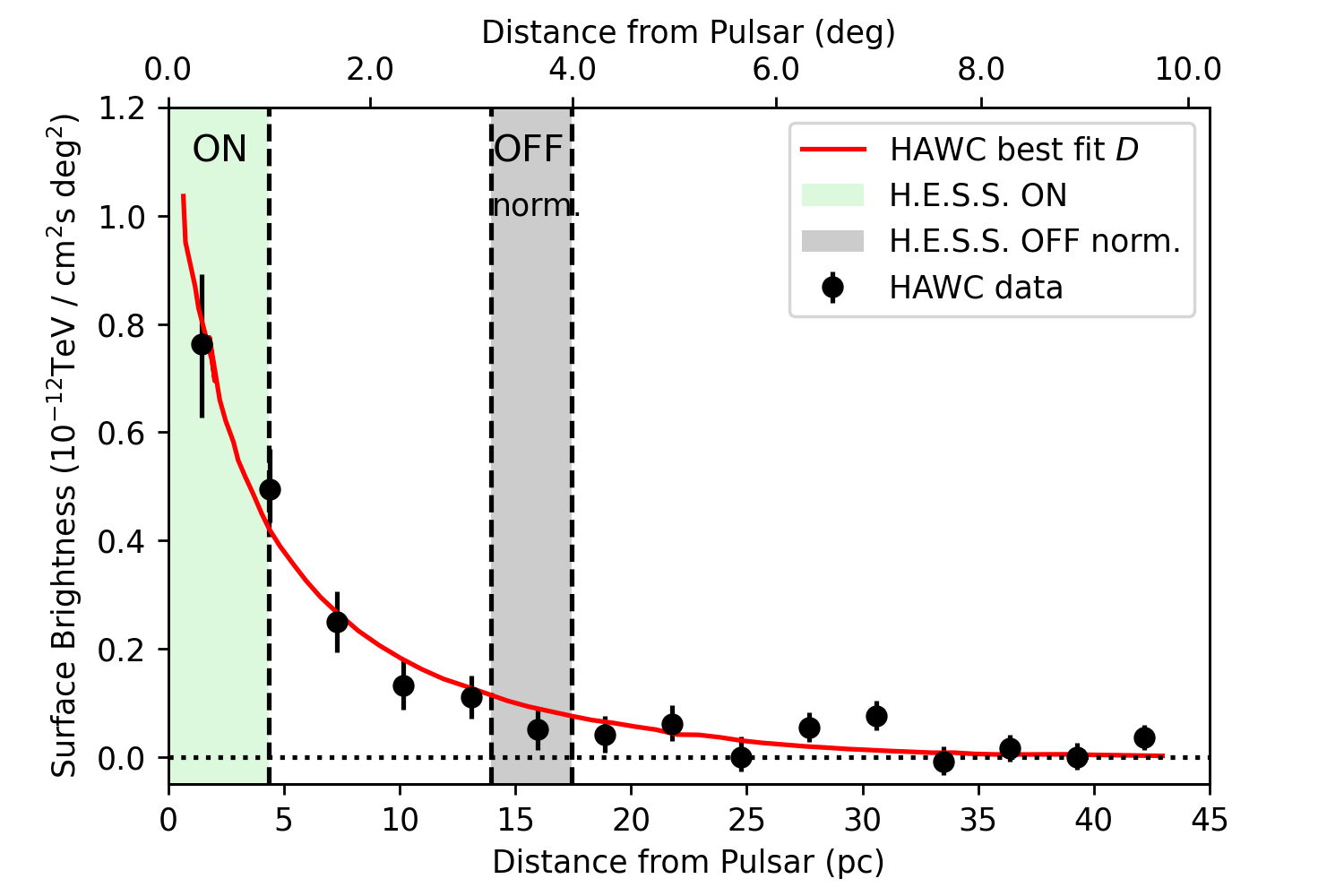 Geminga is an enigmatic radio-quiet γ-ray pulsar located at a mere 250 pc distance from Earth. Extended very-high-energy γ-ray emission around the pulsar was discovered by Milagro and later confirmed by HAWC, which are both water Cherenkov detector-based experiments. However, evidence for the Geminga pulsar wind nebula in gamma rays has long evaded detection by imaging atmospheric Cherenkov telescopes (IACTs) despite targeted observations. The detection of γ-ray emission on angular scales ≳2º poses a considerable challenge for the background estimation in IACT data analysis. With recent developments in understanding the complementary background estimation techniques of water Cherenkov and atmospheric Cherenkov instruments, the H.E.S.S. IACT array can now confirm the detection of highly extended γ-ray emission around the Geminga pulsar with a radius of at least 3º in the energy range 0.5–40 TeV. We find no indications for statistically significant asymmetries or energy-dependent morphology. A flux normalisation of (2.8 ± 0.7) × 10−12 cm−2 s−1 TeV−1 at 1 TeV is obtained within a 1º radius region around the pulsar. To investigate the particle transport within the halo of energetic leptons around the pulsar, we fitted an electron diffusion model to the data. The normalisation of the diffusion coefficient obtained of D0 = 7.6−1.2+1.5 × 1027 cm2 s−1, at an electron energy of 100 TeV, is compatible with values previously reported for the pulsar halo around Geminga, which is considerably below the Galactic average.