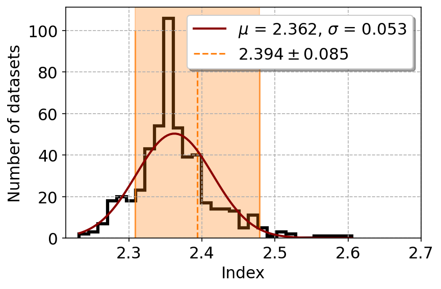 Distribution of the best-fit values of the spectral index for HESS J1813-178B