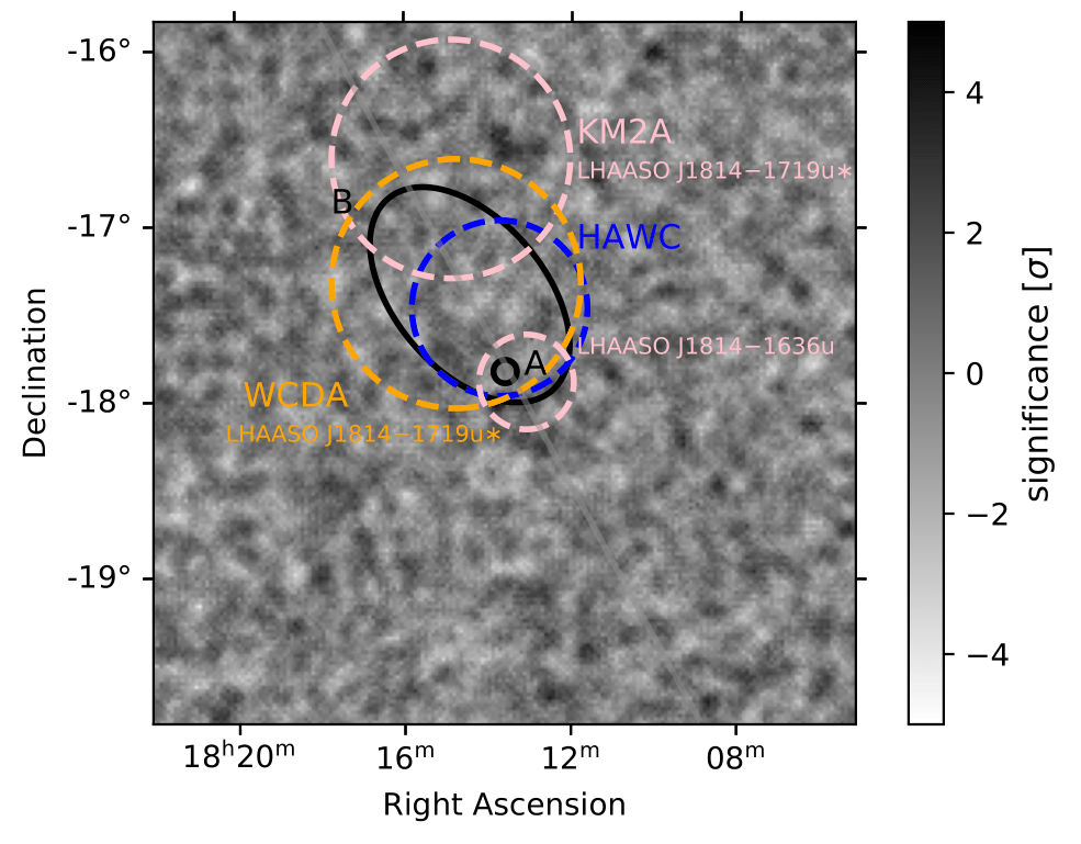 Comparison of the best-fit position with the results obtained by HAWC and LHAASO